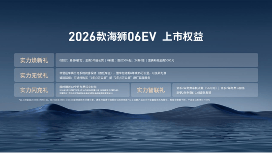 在價格與配置的平衡上,2026款海獅06EV給出了滿分答卷,15.99萬元-17.99萬元的售價區(qū)間,搭配超170項全系標配,真正實現(xiàn)了“入門即豪華”,讓用戶在每一個價格檔位都能享受到越級的價值體驗,而四款不同配置的車型,也精準匹配了不同用戶的多元化用車需求。