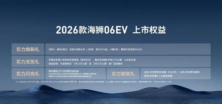 而在這個新賽道上,2026款海獅06EV算是走在前端的引領者,加上新車配置、技術多所升級,對比下來,新價格還是蠻香的,你說是嗎?