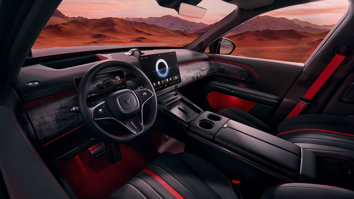 內飾上,以“丹墨”配色營造熱血氛圍,配合“流云墨韻”飾板與手工編織的598顆燈珠“星河天幕”星空頂,共同構建了一個既熱血又沉靜的移動空間。定制開發的甲胄絎縫座椅與頂級NVH靜謐性,讓“中式豪華”深入到感官享受與情感共鳴的每一個細節中。