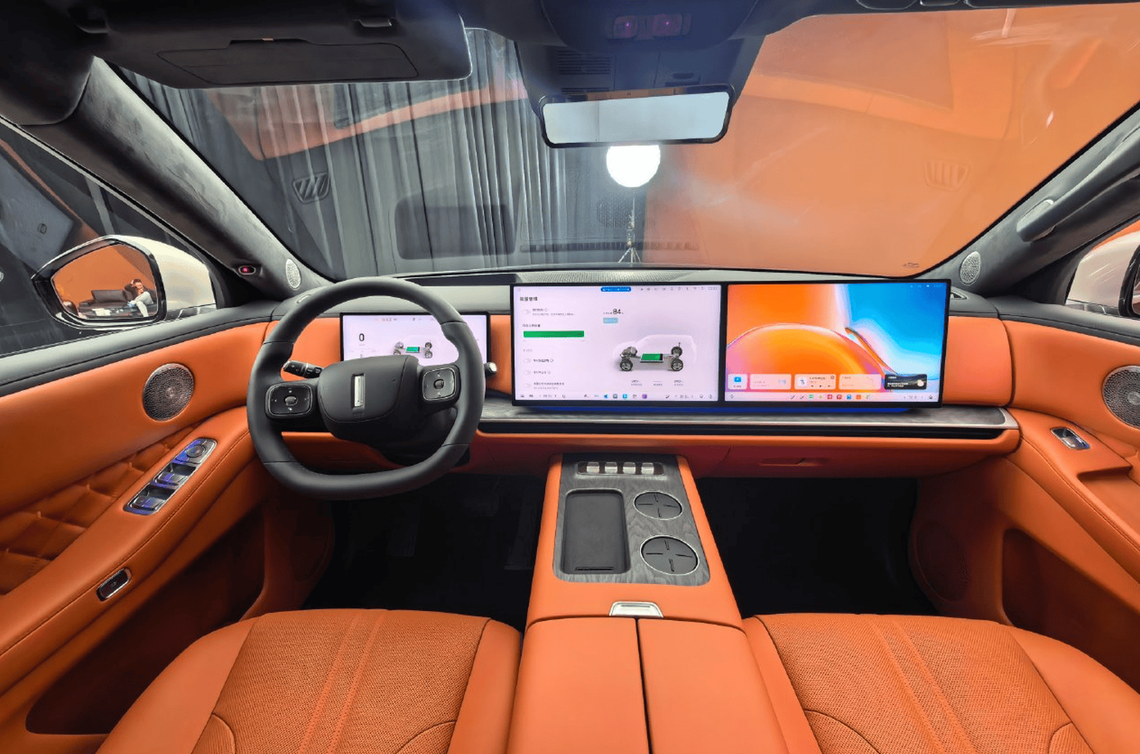 內飾延續了全新的那一套家族化設計語言,簡潔的環抱式座艙內配備雙17.3英寸3K一體式雙聯屏、12.3英寸全液晶儀表屏以及AR-HUD抬頭顯示,并搭載最新Coffee OS智慧座艙,以及“小魏同學”AI艙駕智能體。而大量皮質包覆配合木紋飾板以及氛圍燈,繼續強調豪華氣息。同時還將配備雙幅式多功能方向盤+電子懷擋,副儀表臺上有物理按鍵、手機無線快充、智能冷暖冰箱等。