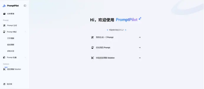 主界面UI看上去很簡潔,功能主要有三個:Prompt生成、Prompt優化和視覺理解Solution。