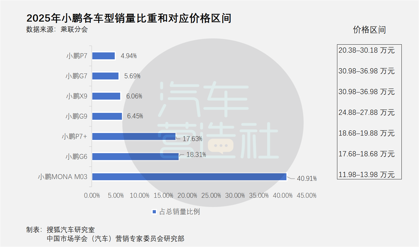 從產品端看,小鵬2025年最重要的變化,就是重新擁有了能持續放量的車型。MONA M03作為小鵬的絕對銷量支柱,連續15個月交付破萬,成為10-15萬元級純電轎車市場銷量冠軍 ,為小鵬貢獻了全年銷量的四成以上;而G6則作為中型純電SUV的爆款產品,登頂2025年中國品牌18—20萬元級中型純電SUV銷量榜首,穩住了小鵬在主流純電SUV市場的基本盤,為總銷量貢獻約20%。