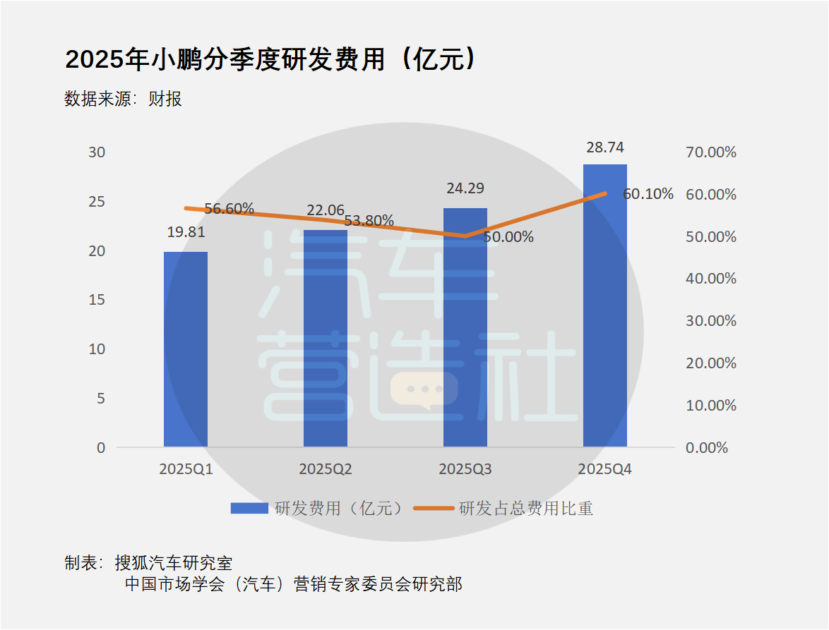 盡管2025年總體仍然虧損,但小鵬并沒有在研發費用上“節流”,反而是持續增加投入。