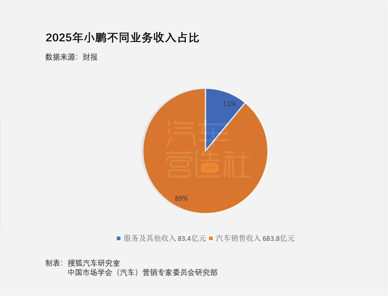 根據全年業績公告,2025年銷售收入683.8億元,同比增長90.8%;汽車毛利率12.8%,較2024年的8.3%明顯改善。到了四季度,汽車銷售收入進一步達到190.7億元,汽車毛利率13.0%。整車業務仍然貢獻了將近九成收入,這意味著小鵬這一輪利潤修復,底層依然是整車業務本身。