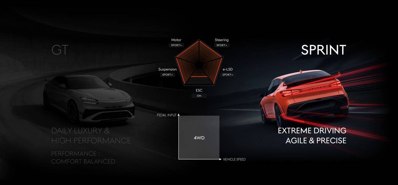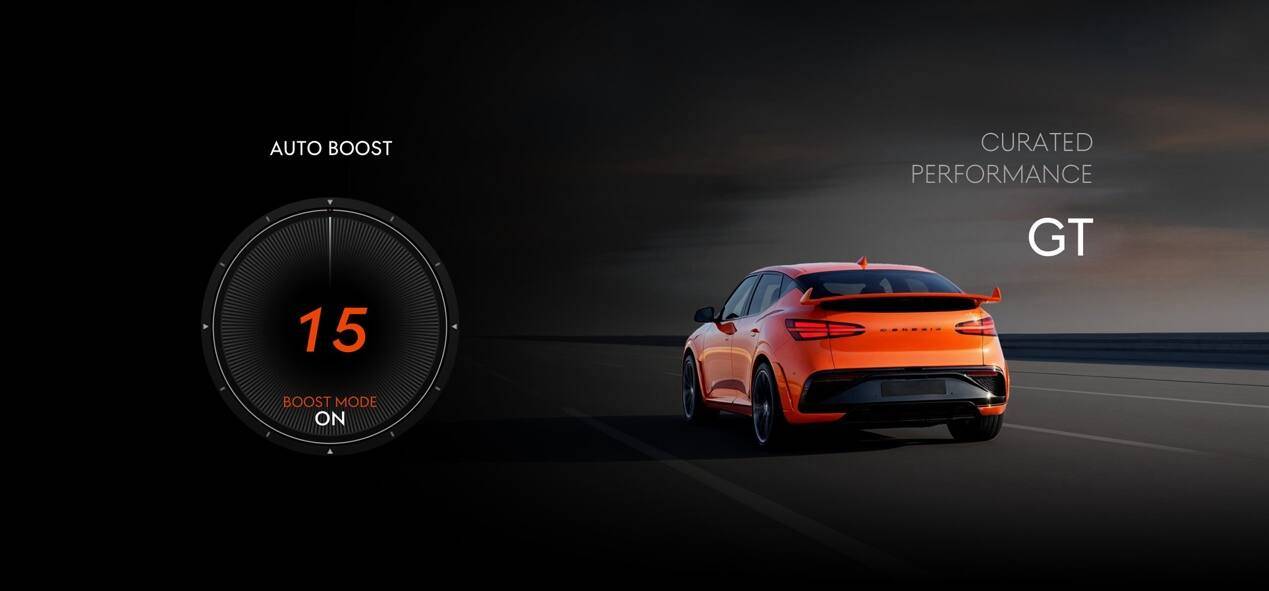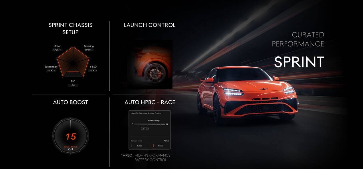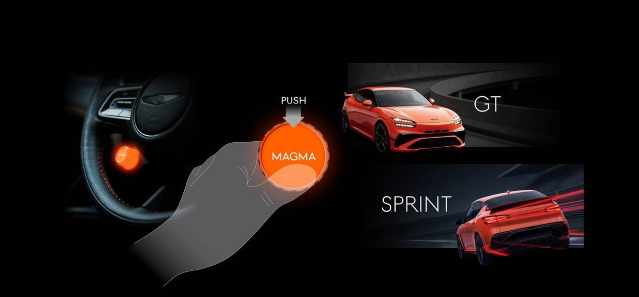 GV60 Magma 的另一大亮點,是駕駛模式與整車系統的智能聯動,車輛能精準識別駕駛者意圖,自動協同各項功能。GT 模式下油門踩到底,Auto Boost 自動激活,無需額外操作即可釋放最強加速。Sprint 模式可聯動 Auto Boost 與隱藏功能,靜止時踩住剎車與油門即可激活起跑控制;電池管理切換至 RACE 模式主動控溫,保證持續強輸出;VGS 虛擬換擋系統進入最強運動設定,把沉浸式體驗拉滿。