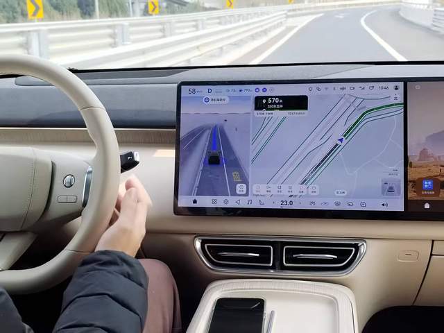 設定導航線路,行駛到主干道,開啟城市領航輔助功能。車輛按著定制路線行駛,全程沒有人工干預。交通燈識別精準、起步過程迅速。跟車距離控制適中。轉彎過程很好的做到了禮讓行人。最值得一提的是,它的剎停距離控制的非常好,完美控制車速,完全沒有急停車或者不舒適的停車,整個跟車停止過程更像是一個老手司機的操作。