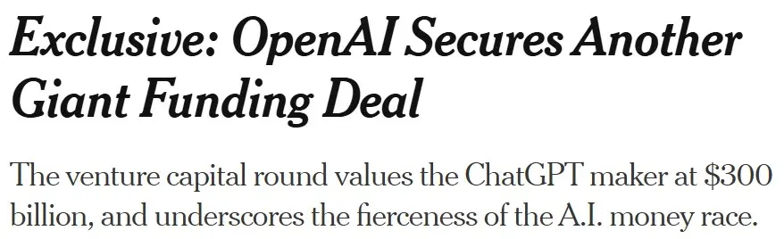 近日,OpenAI又獲得了一筆巨額融資。據(jù)悉,OpenAI已提前數(shù)月籌集了83億美元資金,這就導(dǎo)致它的估值直接達(dá)到3000億美元,這是今年400億美元融資計(jì)劃的一部分。