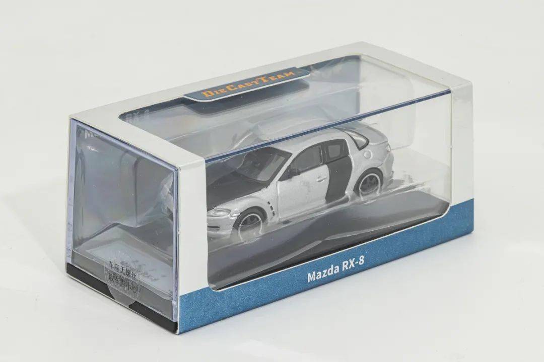 這次給大家介紹的馬自達RX-8模型來自于DCT這個品牌,也是我們熟悉的老朋友了,模型的比例為1/64,材質為合金,這批RX-8一共有珍珠白、深灰色、黃色和我們本次試玩的銀色版,模型官方價格49元(實際到手的價格會更低),本產品附送了透明展示盒,這次試玩馬自達RX-8 在整體上來說細節還算可以、漆面中規中矩,關鍵在于價格較低,性價比高,而且產品也有馬自達的授權。