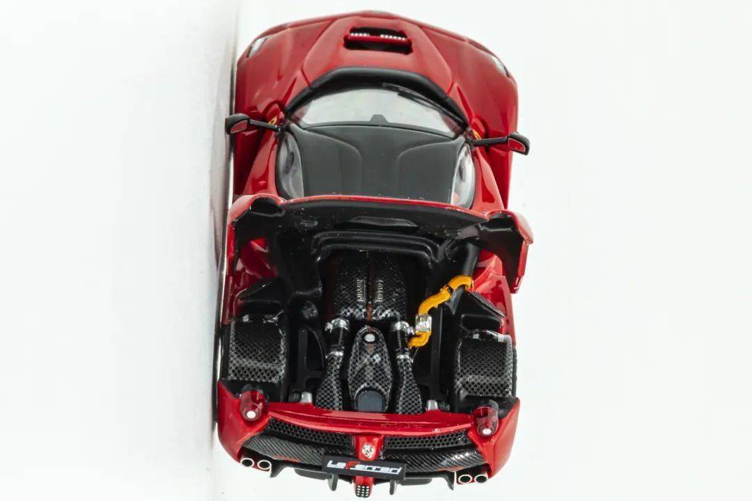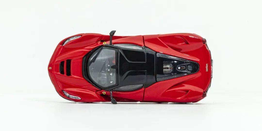 對比真車,雖然透視關系略有不同,但是整體形準還是很到位;拉法為中置引擎架構,車頭依然很長,其實這個和拉法設計參考F1有很大關系;紅色的素漆很符合法拉利的本質,漆面質感還是很好的;模型側面的各種通風口有些是真實鏤空的,有些是浮雕刻畫的,但看起還是很逼真的;側面的法拉利躍馬標應該是貼紙的,車窗邊框為黑色,車外后視鏡為獨立分件;前后蓋因為都是可分離設計,縫隙都稍顯大(真車也是有較明顯縫隙的);不過還是要說一下這款拉法有溢膠及各種漆面小瑕疵,品牌方還是要盡量提高品控。