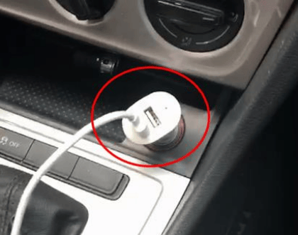 經確認,車輛前部點煙器上外接了非原裝USB充電器(圖3),當使用充電器給手機充電時,故障再現。移除USB充電器后,車輛恢復正常。