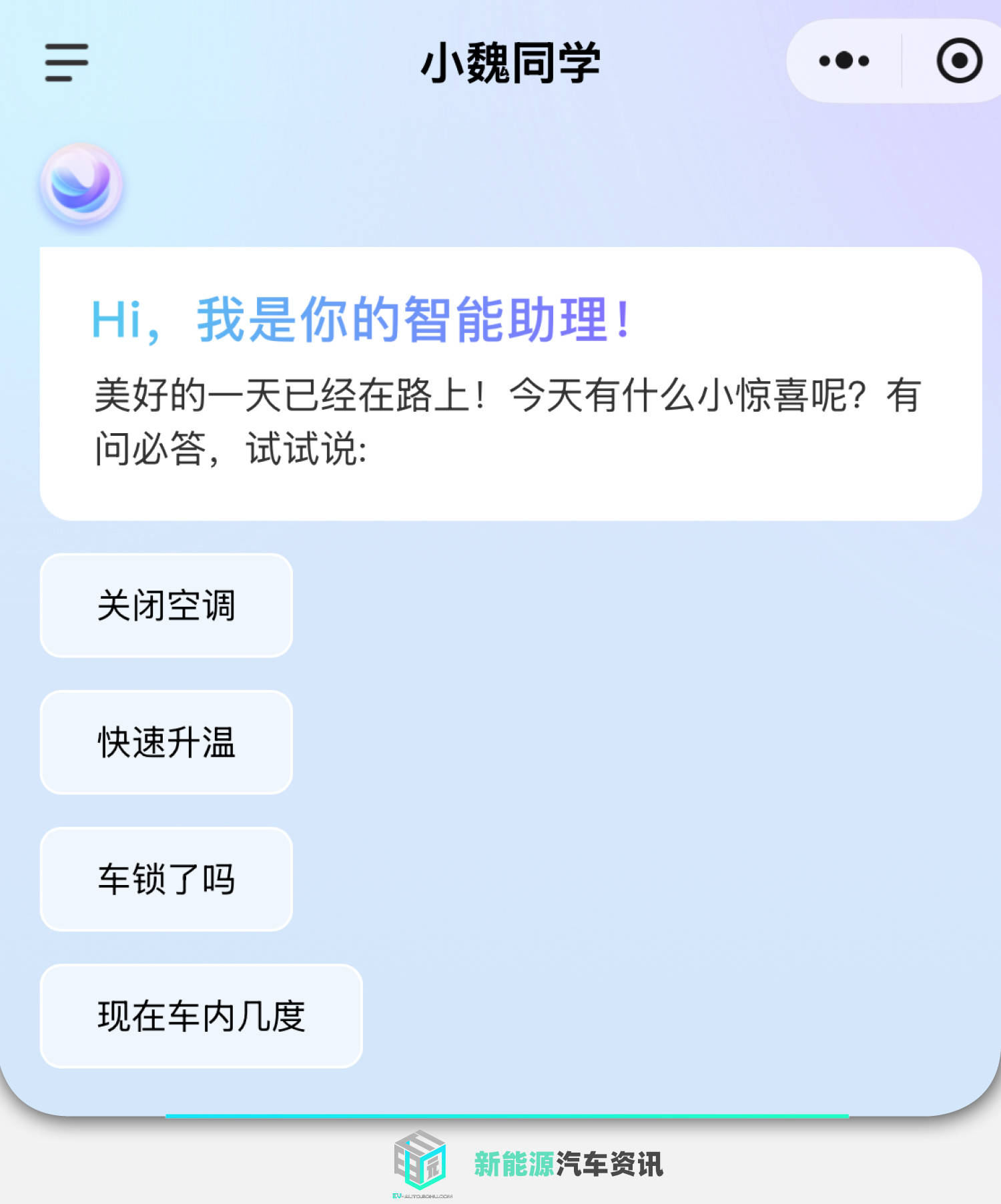 小程序遠程車控時,上車即可出發。上車之前,用戶可通過小程序一次性讓小魏同學提前打開座艙空調、空氣凈化等功能,還可以提前發送想去的地址圖片,小魏同學識別后導航至目標地點,提升了出行前的準備效率。