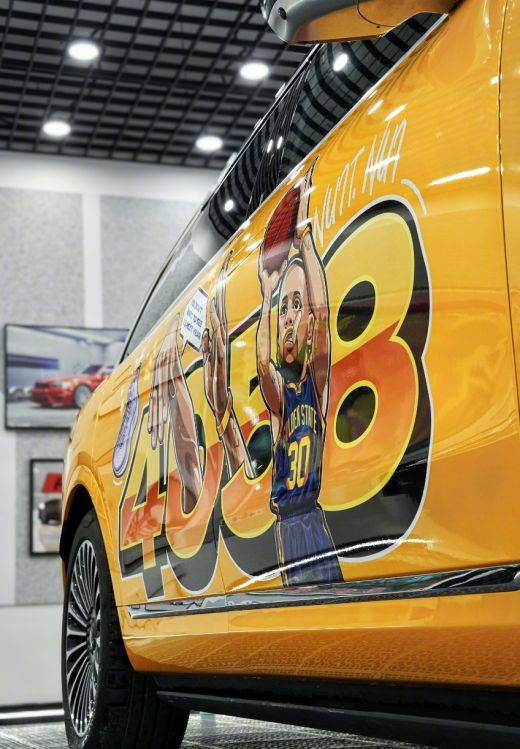 這場備受關注的三千公里追星之旅,源于庫里忠實粉絲的執著初心。這輛“庫里戰車”便是粉絲誠意和熱愛的具象化體現。車身上,庫里的Q版形象憨態可掬,“4058”的三分紀錄數字耀眼奪目,“30 號”球衣等標志性籃球元素隨處可見,從車頭到車尾洋溢著蓬勃的運動張力。