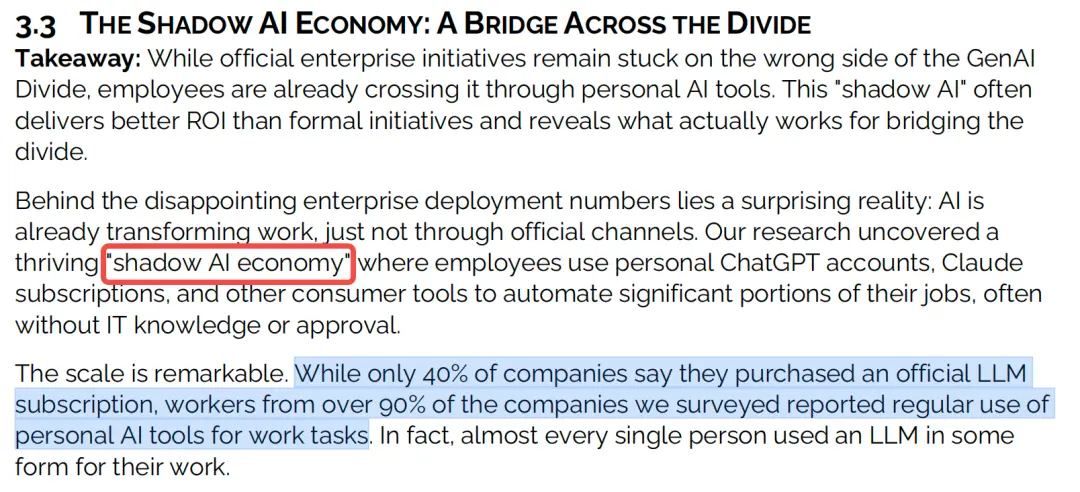 雖然40%的公司都訂閱了大模型服務,但90%的員工依然會選擇用「個人AI工具」悄悄干活!