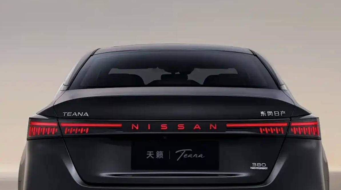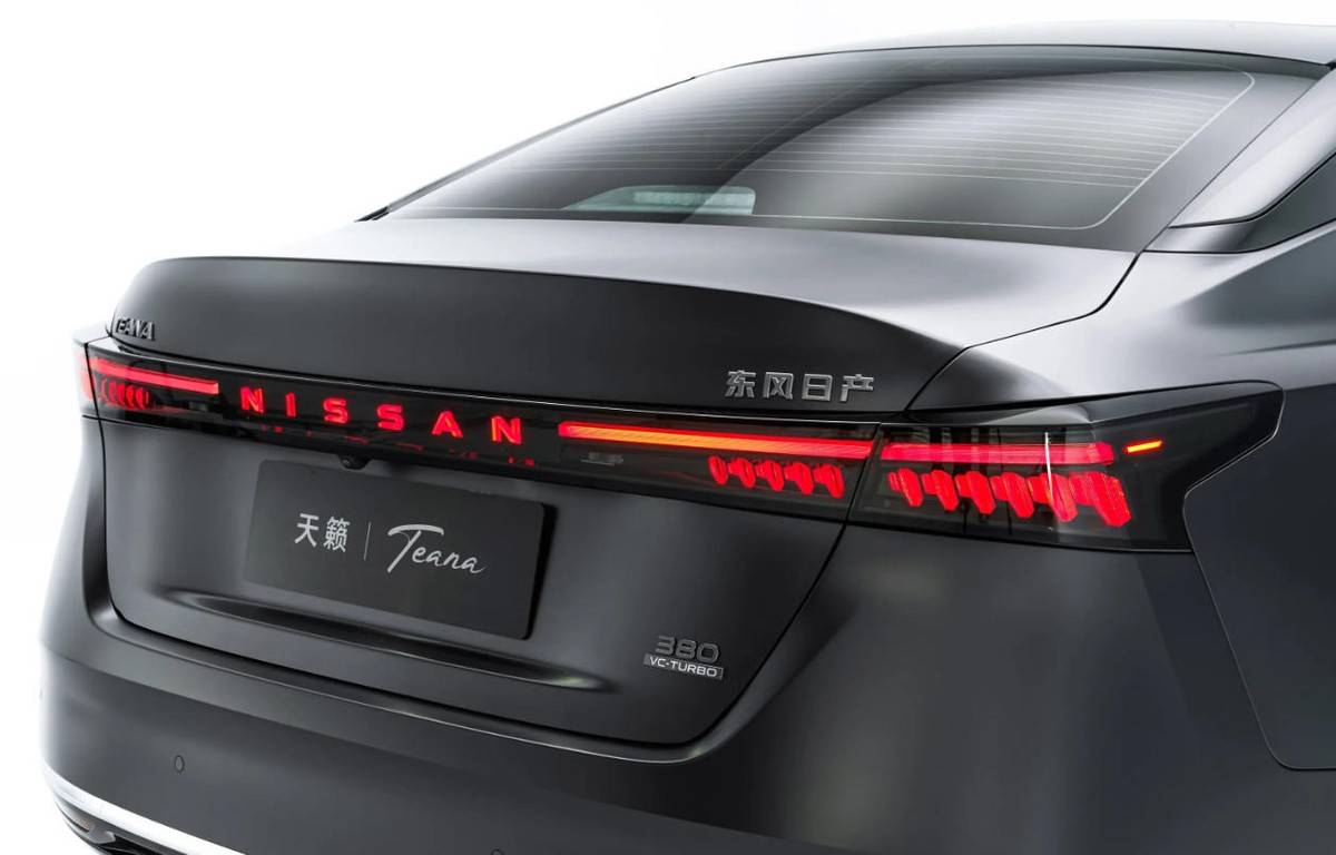 來到車尾,新的天籟PLUS也將會使用全新的貫穿式風格尾燈,日產車標被取消,而是被嵌入在燈帶里的“NISSAN”字母標識給代替。