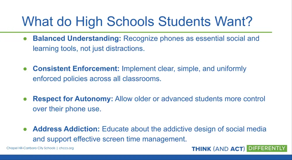 在這個夏天,北卡羅來納州議會通過了第959號眾議院法案,并已簽署成為法律。它對州內K-12年級學生在校期間使用手機、智能手表以及其他無線通信設備做出了規定,“……應禁止學生在教學時間使用、展示或開啟無線通信設備”。于是,新學年開始,北卡提前實施“手機禁令”:高中生課間不能用手機(午餐時可用),初中生要把手機鎖在柜子里,小學生則完全不能帶。