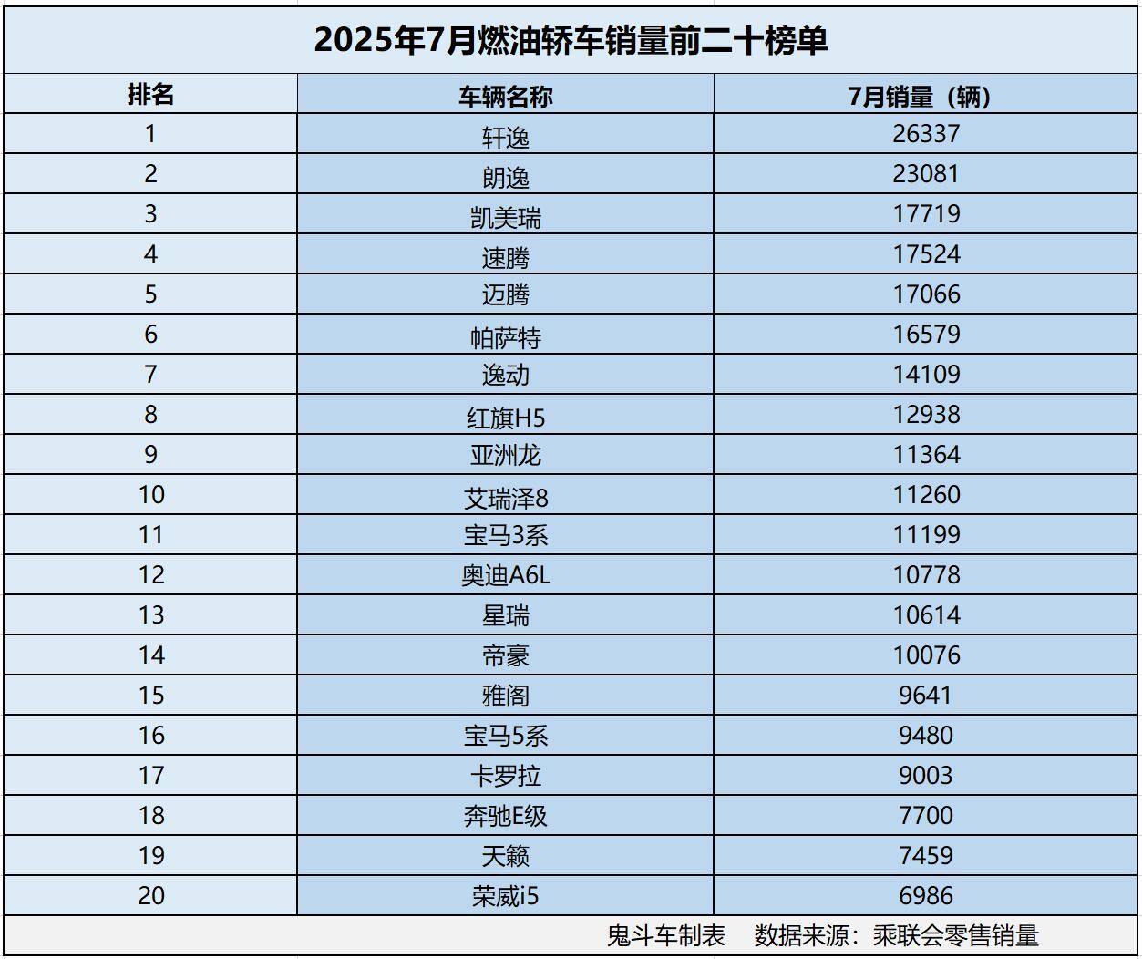 這一點,在銷量上體現得更為明顯,7月乘聯會零售銷量出爐,鬼哥整理出7月燃油轎車銷量排名前二十的榜單,接下來,看看哪些燃油轎車榜上有名?誰的表現更為出眾?