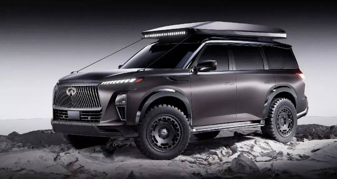 英菲尼迪暫未透露該概念車的詳細(xì)參數(shù),但從設(shè)計(jì)上可清晰看到其越野升級(jí):包括前后底盤護(hù)板與升高的離地間隙,車身配備隆起的越野輪眉,搭配全地形輪胎與硬朗輪轂,進(jìn)一步適配復(fù)雜路況。