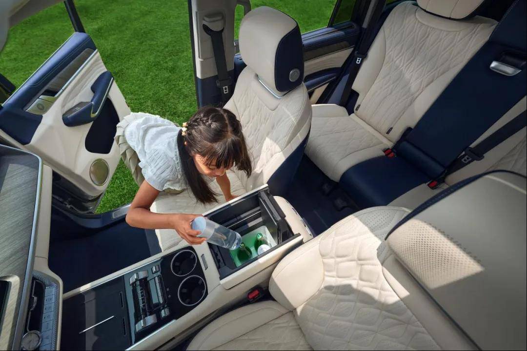 新車座椅采用純天然全粒面Nappa真皮,經78道傳統工藝處理,觸感細膩柔韌。前后排四座椅均支持通風、加熱與按摩功能,讓SUV也能擁有MPV級的頭等艙體驗。50W獨立壓縮機,真冷暖車載冰箱,支持-6℃冷藏到50℃加熱,滿足冰飲冷萃、溫奶熱咖等多場景需求。多屏互聯系統支持觸控、語音、遙控與手勢交互,后排娛樂屏可陪伴孩子旅途時光,Coffee GPT智能助手則實時回應各類提問,成為移動中的“家庭智慧伙伴”。