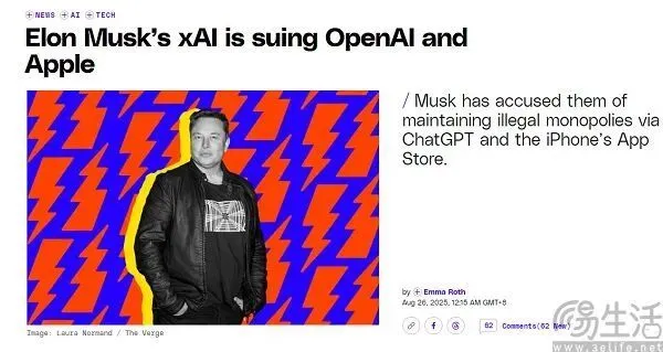 只不過外界都沒想到的是,這一次馬斯克并沒有停留在過過嘴癮上,而是真的付諸行動了。就在當地時間8月25日,馬斯克旗下xAI采取法律行動,起訴了蘋果公司和OpenAI,指控雙方的協議將扼殺AI行業的市場競爭。